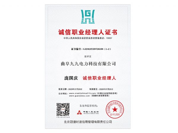 • 誠信職業(yè)經(jīng)理人證書